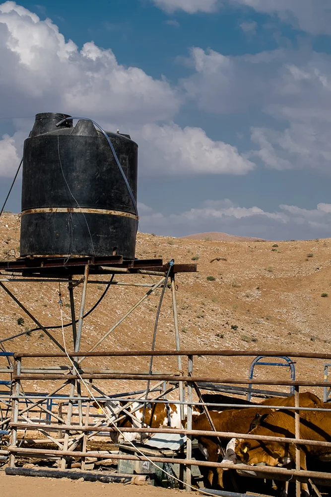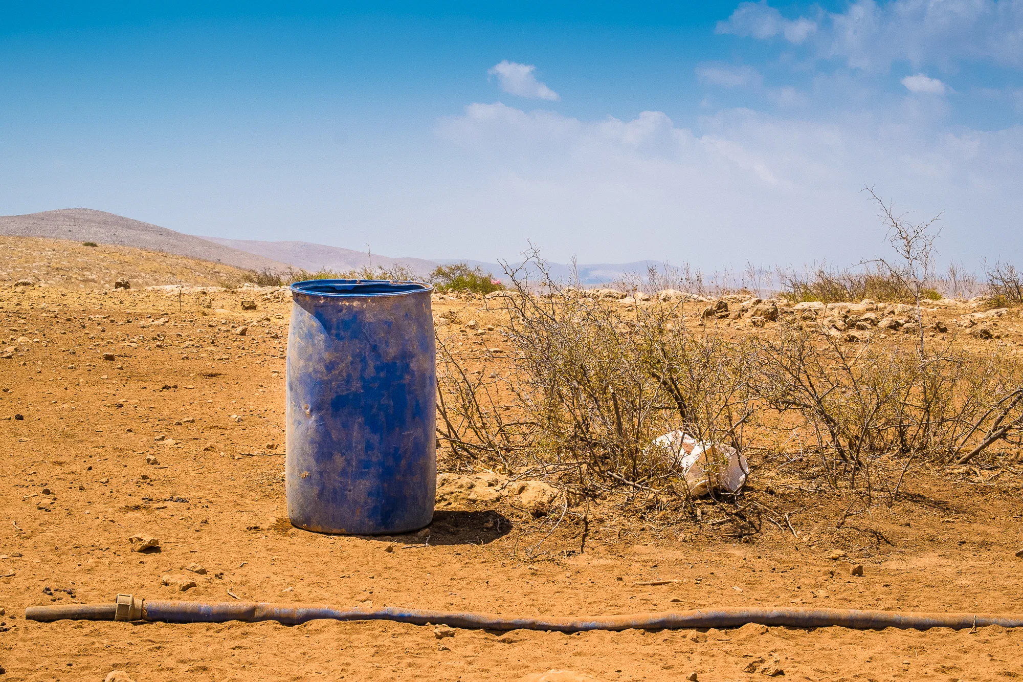 As happens all too often, the water containers of the Palestinians are also sabotaged. Not far from the Um Zuka outpost, during the month of Ramadan, the blue water barrels that the Palestinians bring to the hills so that they can water their sheep while herding, were viciously slashed, spilling all that precious water....
